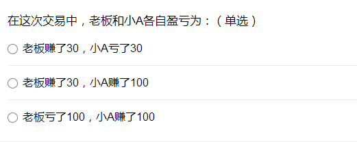 這么說也沒錯(cuò)。不過別著急,我不是告訴你,三種答案都有道理的么,你回憶一下買禮品的題目中另外兩個(gè)答案,想想看有沒有別的情況?先給你一點(diǎn)提示:為什么這份禮物老板用20元錢的成本做出來,卻可以賣價(jià)150元呢?