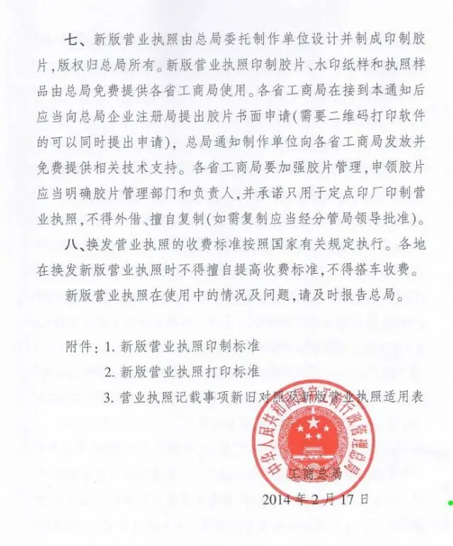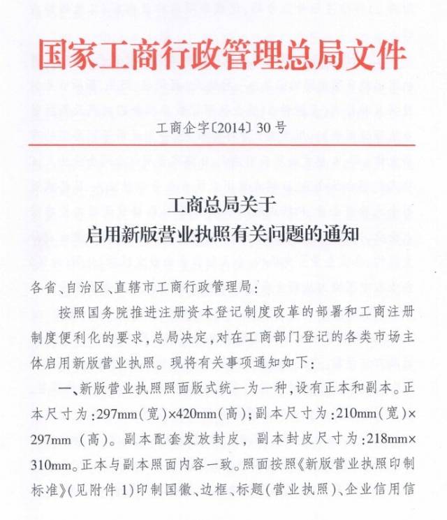 詳見工商總局文件《工商總局關(guān)于啟用新版營(yíng)業(yè)執(zhí)照有關(guān)問(wèn)題的通知》,戳下圖↓↓↓