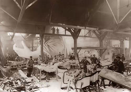 ▼1884年,修建中的自由女神像。地點(diǎn):巴黎。