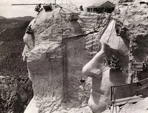 ▼1939年,修建中的拉什莫爾山(總統(tǒng)山)。
