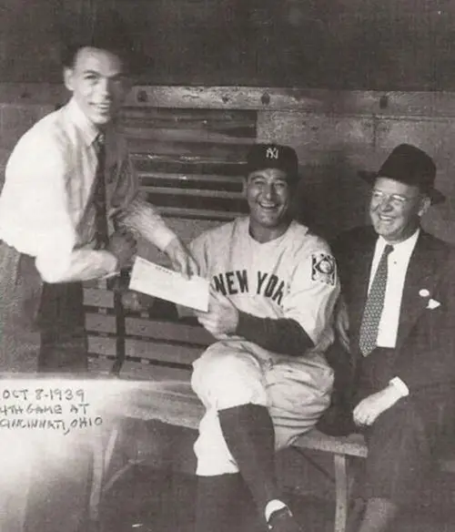 ▼**棒球手盧伽雷(后來患上ALS)跟弗蘭克·辛納屈簽名。