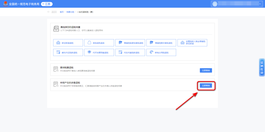 對于錯誤申報(bào)內(nèi)容進(jìn)行更正申報(bào)后,符合退稅條件需要辦理退稅的,納稅人可點(diǎn)擊【我要辦稅】-【一般退稅管理】-【一站式退抵稅(費(fèi))】,點(diǎn)擊【申報(bào)產(chǎn)生的多繳退稅】進(jìn)行辦理。